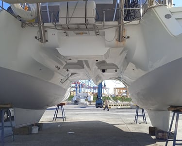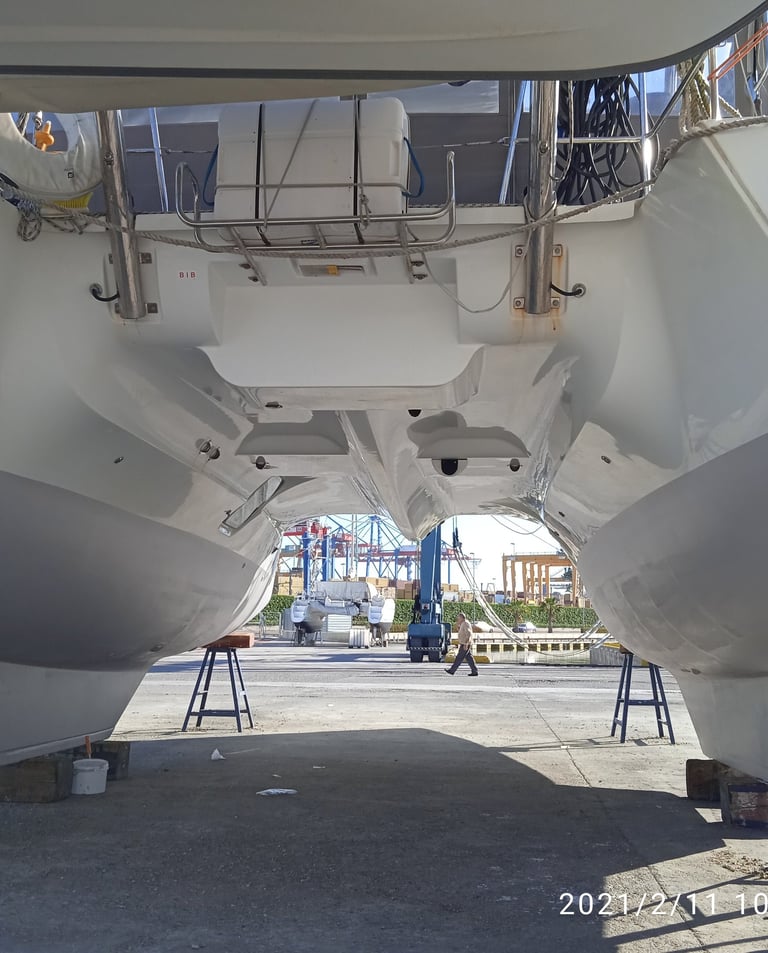 La inspección de ambos cascos es fundamental para garantizar la seguridad y estabilidad del catamarán.