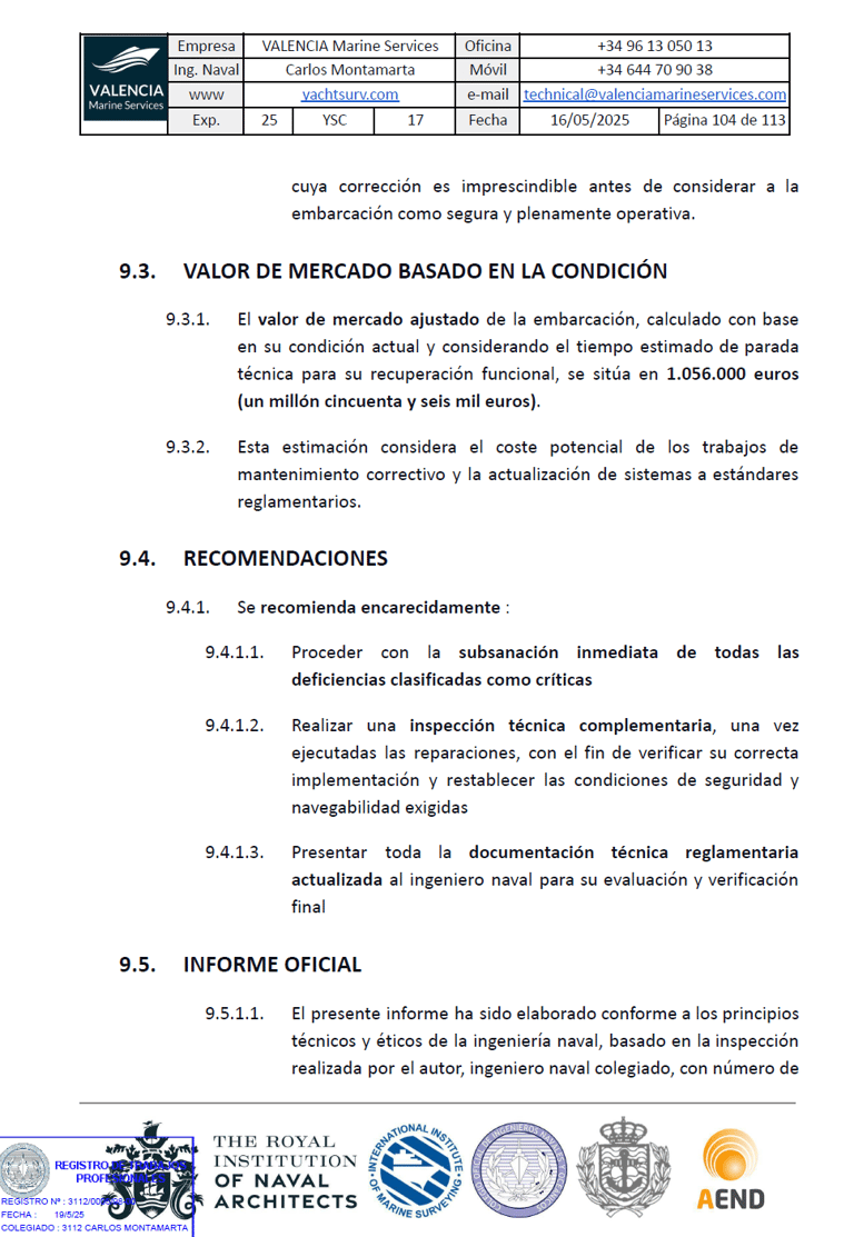 Este informe permite al comprador tomar una decisión informada antes de completar la compra del yate a motor